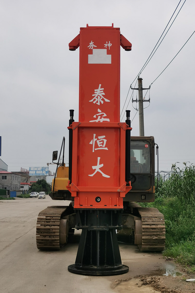 液壓樁錘一般與自行式樁架、液壓動力站等成套使用。可釆用專用樁架或柴油錘的樁架。與旋挖鉆機機配套時,可直接利用旋挖鉆機的導向架(桅桿)及液壓動力。